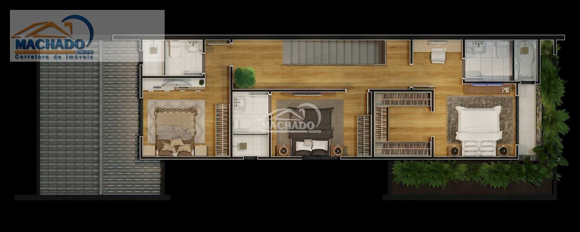 Com três suítes espaçosas, é ideal para famílias que valorizam privacidade e elegância. Destacando-se por suas aberturas amplas de seis metros, o sobrado é inundado com luz natural, criando uma atmosfera luminosa e convidativa em todos os ambientes.