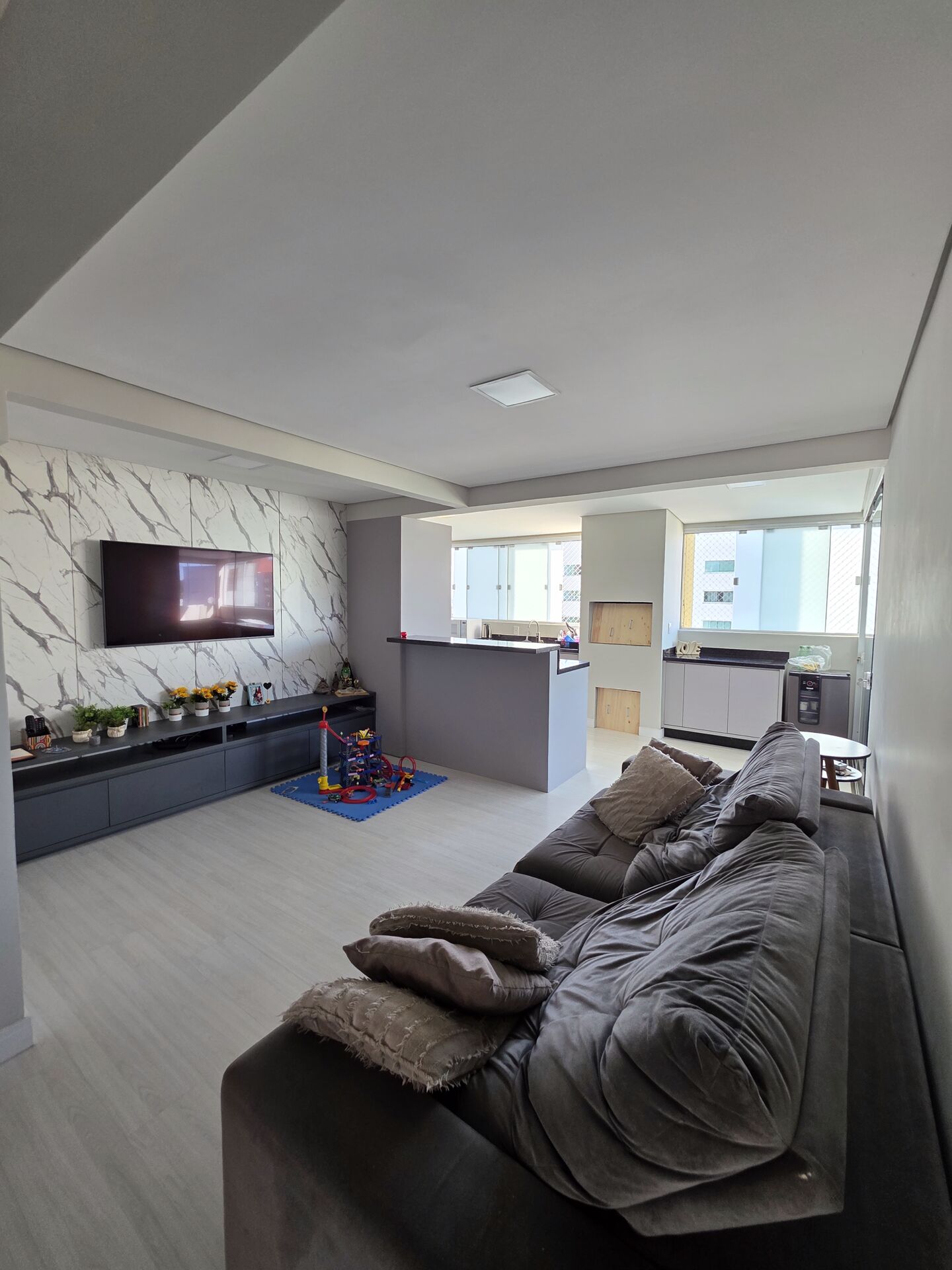 O grande destaque fica por conta da varanda: um espaço perfeito para relaxar e aproveitar bons momentos, equipada com churrasqueira e uma agradável hidromassagem, com acesso tanto pela sala quanto pela suíte master — um verdadeiro refúgio particular.